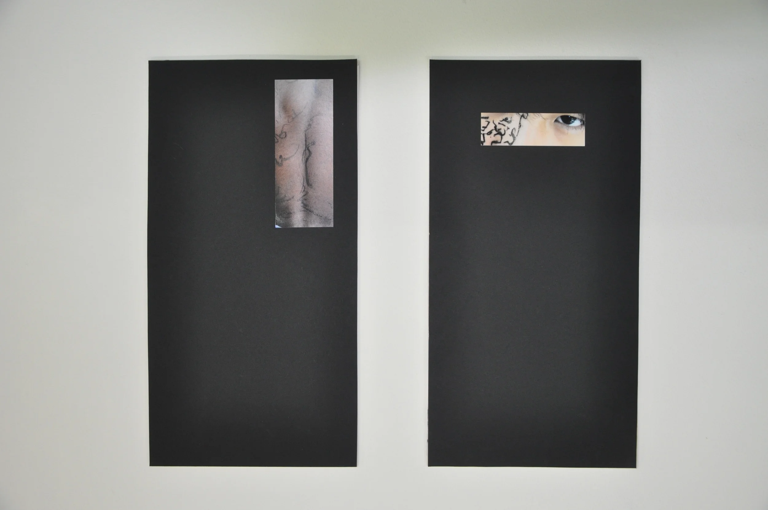 Accordion folios of bodyprints: xuan paper, matboard, photographic prints and ink. 2011.
